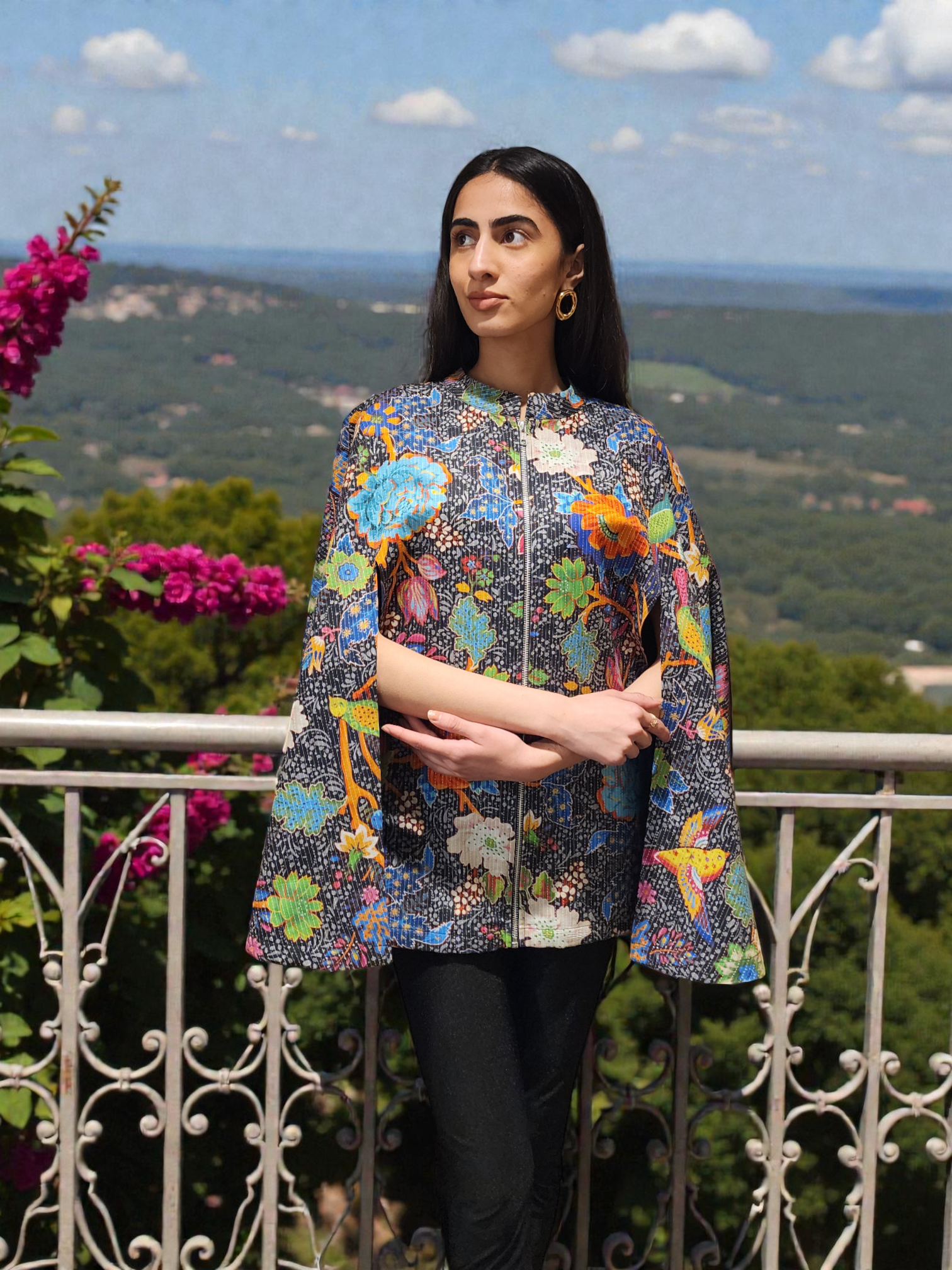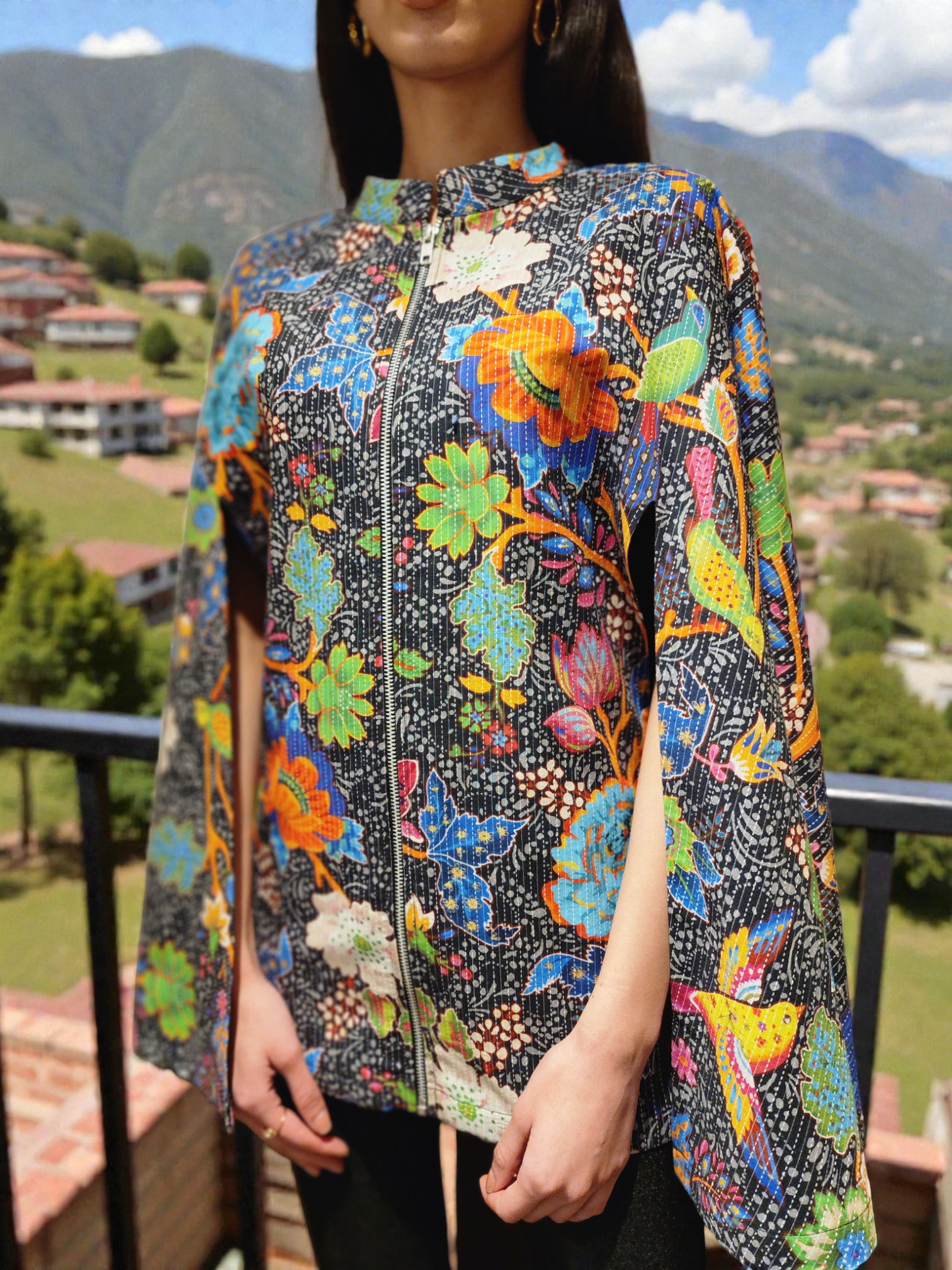 Discover the Black Aurora Cape-your new wardrobe essential that seamlessly combines comfort with contemporary style. Crafted from breathable cotton and adorned with beautiful kantha embroidery, this piece offers the relaxed fit you crave without compromising on sophistication.